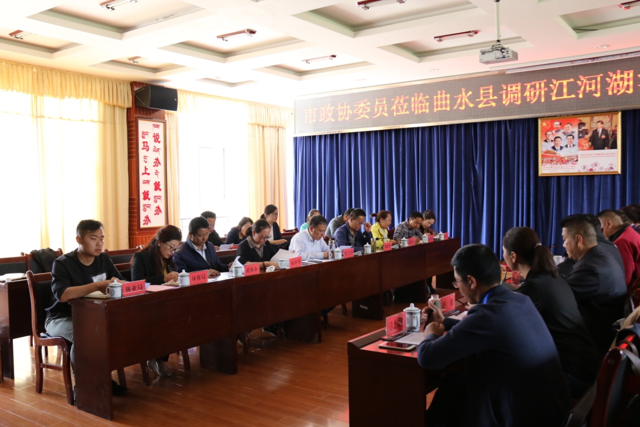 中午,在縣會務中心三樓會議室圍繞“江河湖泊水資源保護和中心城區(qū)水系整治情況”召開了專題調(diào)研座談會。會議由曲水縣政協(xié)主席鄒玉明主持。政府副縣長張建華同志首先圍繞“江河湖泊水資源保護和中心城區(qū)水系調(diào)整情況”進行匯報。同時,與會人員還進行了交流發(fā)言。