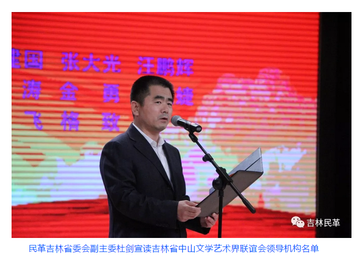 杜劍宣讀了吉林省中山文學(xué)藝術(shù)界聯(lián)誼會領(lǐng)導(dǎo)機(jī)構(gòu)名單。與會領(lǐng)導(dǎo)共同為吉林省中山文學(xué)藝術(shù)界聯(lián)誼會揭牌,并為會長、副會長頒發(fā)任命證書。