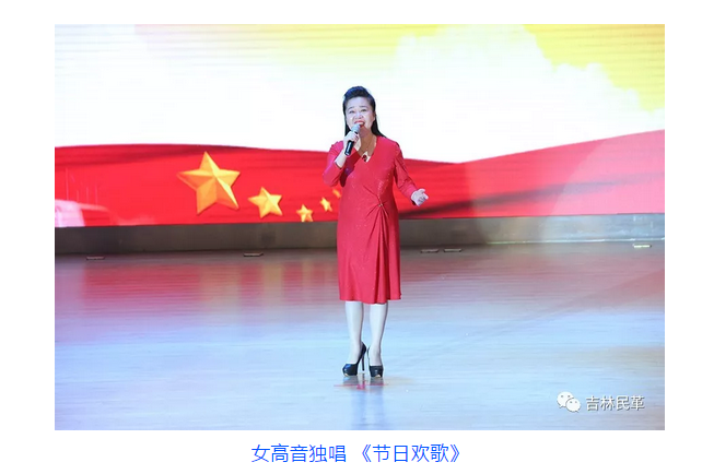 文藝匯演由吉林民革黨員精彩呈現(xiàn),包括歌曲、二人轉(zhuǎn)、朗誦、書法、武術(shù)、評劇、京劇、舞蹈等節(jié)目。省直民革黨員們用一首大合唱《我和我的祖國》為演出開場。二人轉(zhuǎn)戲曲聯(lián)唱《小拜年》等曲目歡快優(yōu)美,展現(xiàn)了濃郁的東北地域文化。武術(shù)表演《中華神韻》剛?cè)岵?jì),震撼全場。歌曲《節(jié)日歡歌》、《長鼓敲起來》、《我愛你中國》將演出推向高潮。評劇《宋慶齡與新中國》頗具情感張力,令現(xiàn)場觀眾深受感染。演出在精美絕倫的舞蹈《長白又一春》中落下帷幕。整場演出富于情懷,贏得現(xiàn)場觀眾的陣陣掌聲。