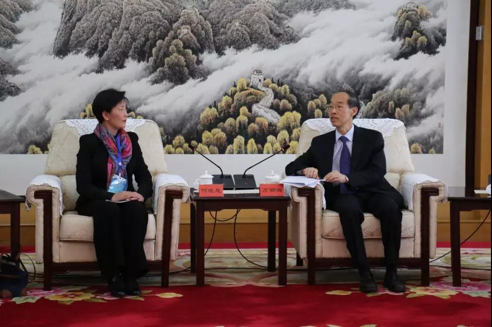 中國網(wǎng)訊 據(jù)民革中央官網(wǎng)消息,4月8日,全國人大常委會副委員長、民革中央主席、中國和平統(tǒng)一促進會副會長萬鄂湘在北京會見了以中國和平統(tǒng)一促進會理事、全美中國和平統(tǒng)一促進會聯(lián)合會執(zhí)行會長、華盛頓中國和平統(tǒng)一促進會會長何曉慧為團長的“文脈中華·尋根祭祖”——全美各統(tǒng)促會聯(lián)合訪問團一行。