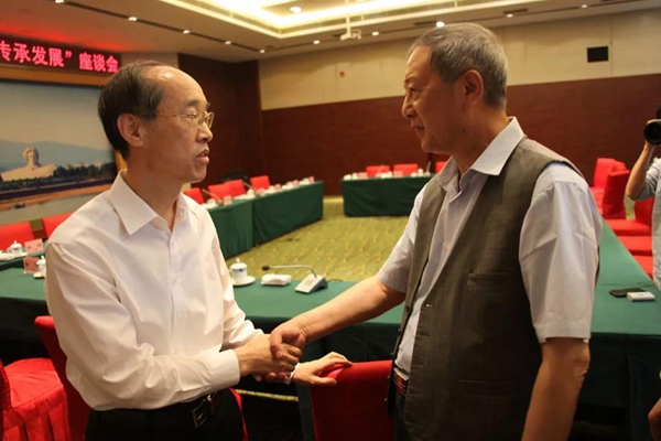 “中醫(yī)藥事業(yè)傳承發(fā)展”調(diào)研座談會(huì)后,萬(wàn)鄂湘與與會(huì)者交流