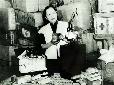 1948年,宋慶齡在檢查中國福利基金會運往解放區(qū)的醫(yī)藥物資