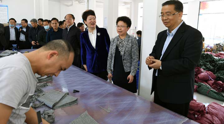 視察團一行來到長順縣廣順鎮(zhèn)核子村茭白種植基地,實地察看茭白長勢,鼓勵當(dāng)?shù)卮罅Πl(fā)展種養(yǎng)結(jié)合的立體農(nóng)業(yè),完善“企業(yè)+黨支部+合作社+貧困戶”機制,吸納更多貧困勞動力就業(yè)。長順·貴陽蔬菜保供基地由貴陽農(nóng)投集團建設(shè)經(jīng)營,已種植蔬菜2800畝,帶動500余名貧困勞動力務(wù)工就業(yè)。視察團走進田間地頭察看西蘭花和荷蘭豆種植情況,了解農(nóng)作物收成、產(chǎn)銷對接和利益聯(lián)結(jié)等情況,勉勵貴陽農(nóng)投集團發(fā)揮優(yōu)勢、做大規(guī)模、拓展市場,最大限度吸納貧困勞動力到基地務(wù)工就業(yè)增收。在廣順鎮(zhèn)金竹花園和長寨街道順興社區(qū)易地扶貧搬遷安置點,視察團走進雨傘、鞋具加工生產(chǎn)扶貧車間,與正在務(wù)工勞作的搬遷群眾交談,了解他們的收入和生活情況,希望當(dāng)?shù)胤龀指喾鲐氒囬g,組織搬遷群眾就近就地就業(yè),真正做到搬遷一戶、就業(yè)一戶、脫貧一戶。