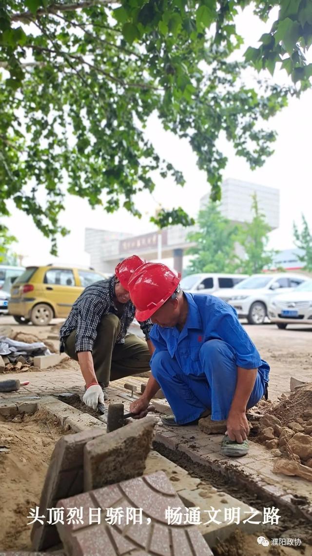 8月22號(hào)中午,工人師傅在濮陽(yáng)職業(yè)技術(shù)學(xué)院門(mén)口西側(cè)修復(fù)破損的道路。