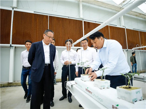 9月23日,鄭建邦一行走進(jìn)蔬菜工廠,查看蔬菜育苗、種植情況,并通過視頻短片了解項(xiàng)目全程推進(jìn)情況。