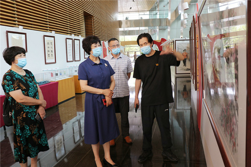 胡淑彥對孫曉材表示慰問,并一同參觀了展覽。這里同時展出的還有中鋼集團慶祝中國共產(chǎn)黨成立100周年“根植文化潤初心”的主題展覽。胡淑彥一行參觀了攝影、書法、繪畫、篆刻等形式多樣的職工原創(chuàng)作品。